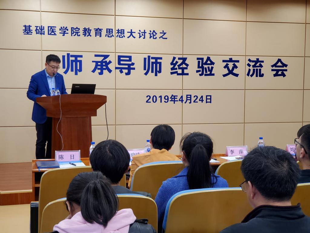 4月24日,欧博abg官方网站在菊韵报告厅召开教育思想大讨论系列活动之师承导师经验交流会。校长宋柏林,教务处副处长刘杰,欧博abg官方网站领导班子,各教研室主任,全院教师及部分师承学生参加会议,党委书记陈日主持会议。
