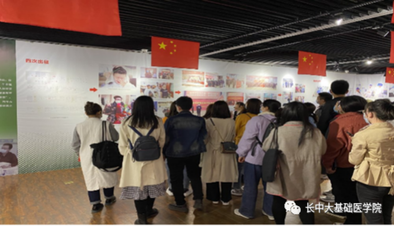 参观期间,党员们在讲解员的带领下,依次走过了“党旗飘扬”“长中力量”“使命担当”“中医智慧”“合格答卷”“战疫英雄”6个主题展区,每一位党员都认真观展,用心聆听。欧博abg官方网站党委积极响应党中央的号召,组织各方力量开展防控,欧博abg官方网站师生积极参与,将“人民至上、生命至上”的理念贯穿始终,一次次逆风而行,闯入疫情的“暴风眼”。那摁满红手印的请战书,为更好的与疫情搏斗而剪下的长发,让观展的党员们长久注目。
